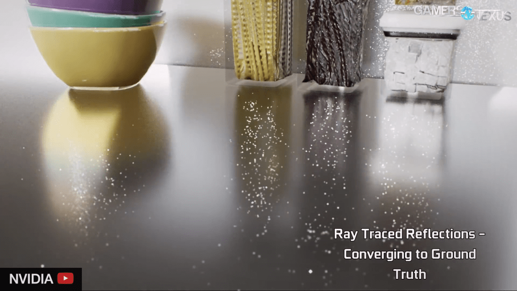 AI is then used to de-noise the images, filling in the gaps where rays have not been traced to simulate how light should be behaving at all parts of the screen. This is not as perfect as film scale ray tracing but claims to do a more realistic job than other video rendering techniques using shaders.